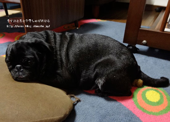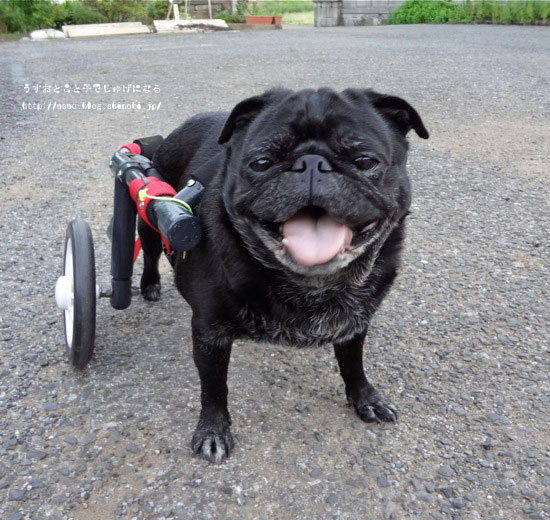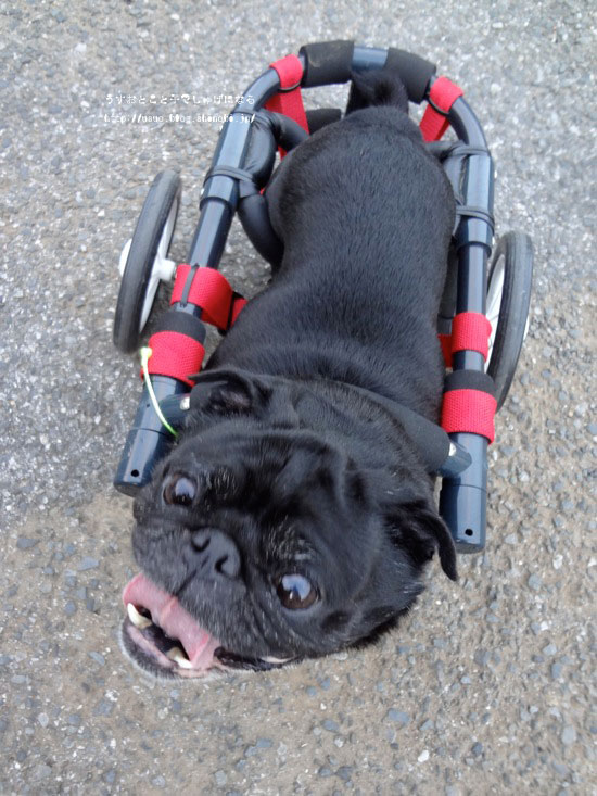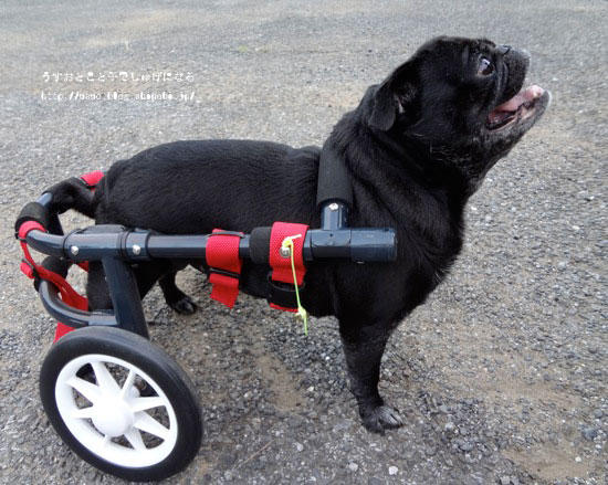 そういえば先日、ホームセンターでカートに乗っているシニア・パグを見かけました。
