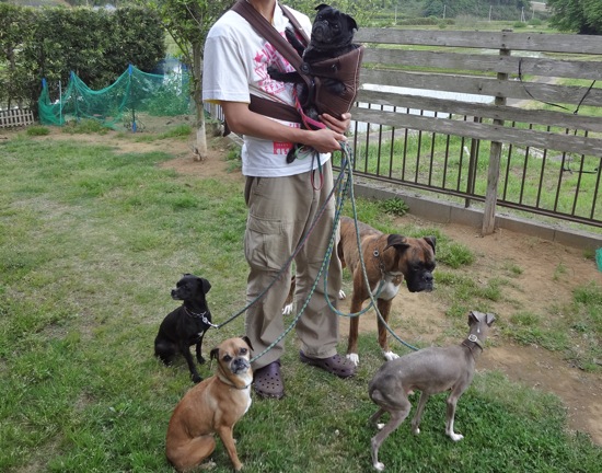 イタグレ×パグの混血犬【うすお】&【こと子】。そしてボクサー【しゅげ】。小型MIXとボクサーのフリスビー・フリースタイル。父犬【凛】母犬【ぴのこ】もたまに登場。