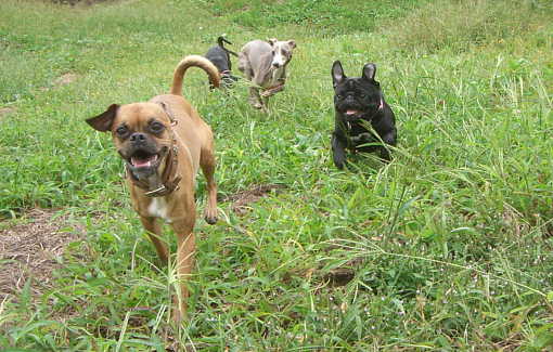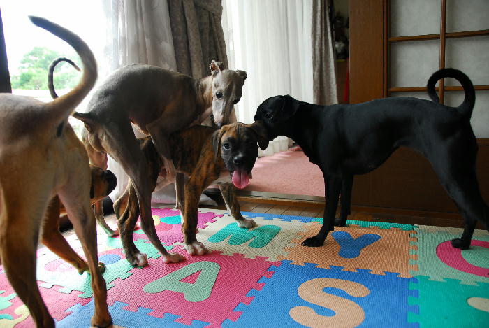 イタグレ×パグの混血犬【うすお】&【こと子】。そしてボクサー【しゅげ】。小型MIXとボクサーのフリスビー・フリースタイル。父犬【凛】母犬【ぴのこ】もたまに登場。